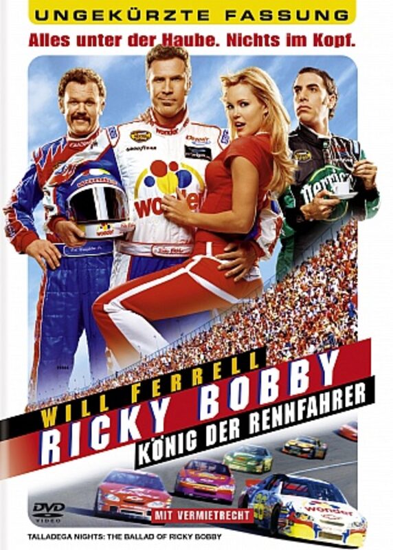 Ricky Bobby - König der Rennfahrer Originaltitel: Talladega Nights: The Ballad of Ricky Bobby | High, Wide, and HandsomeAlles, was Ricky Bobby (WILL FERRELL) jemals wollte, war schnell zu sein... richtig schnell. Schon sein ganzes Leben lang träumte er davon, eines Tages in die Fußstapfen seines Vaters zu treten, der einst die Familie verliess, um seine Rennfahrer-Karriere zu verfolgen. Schnell steigt auch Ricky zum Star der NASCAR-Szene auf. "Wenn du nicht der Erste bist, bist du der Letzte", lautet sein Motto. Auf dem Gipfel seiner Karriere hat er alles, was er sich nur wünschen kann: eine schöne Frau, ein großes Haus am See, zwei aufgeweckte Söhne, hochdotierte Sponsoren-Verträge und eine Siegesserie, die von Daytona bis Darlington reicht.