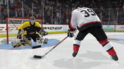 * Einhändiges Antäuschen - NHL 09 fügt deinen Offensiv-Möglichkeiten eine weitere hinzu: Das einhändige Antäuschen. Wenn du dich bei einem Angriff dem Tor näherst, täusche an und versenke den Puck mit einer Hand hinter dem verdutzten Torhüter im Tor.
