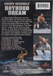 Die Anfänge von Shawn Michaels' Karriere erreichten 1996 ihren knochenbrechenden Höhepunkt, als er scheinbar jede wichtige Auszeichnung der WWE gewann. BOYHOOD DREAMS wirft einen Blick auf das Erfolgsjahr 1996, in dem er sich mit seinen Erfolgen bei „Wrestlemania XII“ den prestigeträchtigsten Preis der WWE sicherte. Die Kämpfe auf dieser Veröffentlichung zeigen, wie schwer es für ihn war, den Titel zu gewinnen, mit beeindruckenden Gegnern wie Sycho Sid, Diesel, British Bulldog, Vader und Bret Hart.